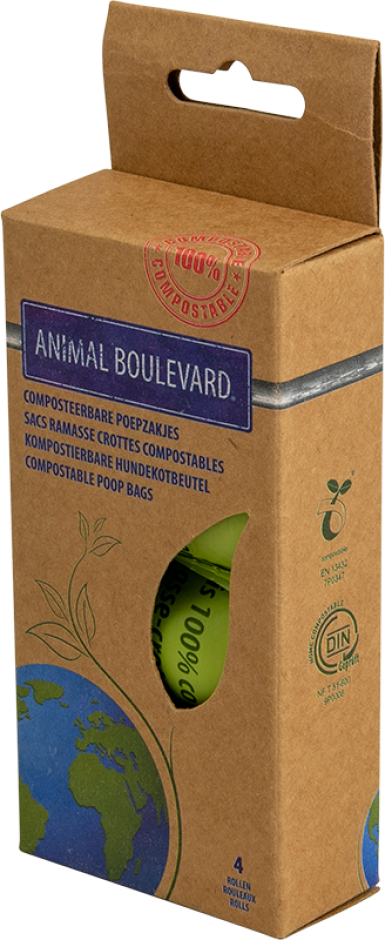 Deze poepzakjes zijn gemaakt van gecertificeerd composteerbaar materiaal op basis van maiszetmeel. Ze zijn bovendien 100% composteerbaar, thuis en in een industriële omgeving. Koel en droog bewaren voor een optimaal kwaliteitsbehoud.