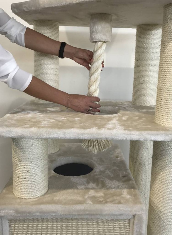 - Sisalpalen zijn Ø 12 cm en het 6 mm dikke natuursisal is verlijmd aan de palen. (Mocht uw kat het sisaltouw doorkrabben “rolt” het touw niet naar beneden).