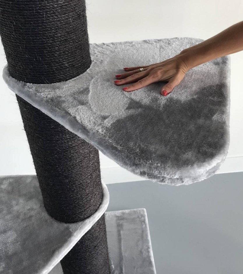 De krabpaal Maine Coon Tower Blackline Light Grey van topmerk RHRQuality is een plafondhoge krabpaal (Van 245 tot 265cm verstelbaar tegen uw plafond en hoger op aanvraag) met 20cm dikke sisalpalen en grote hangmatten van 45cm ligplek, die eenvoudig 20KG kunnen dragen. Ideaal voor zware katten als Maine Coon en Ragdoll. Met een bodemplaat die verzwaard is en 60 x 60 cm en 4,5 cm dik is zeer stabiel. U kunt deze krabpaal Maine Coon Tower op meerdere manieren opbouwen en u bepaald dus zelf waar de grote steps en de hangmatten komen. De steps en de hangmatten zijn beide ook draaibaar.