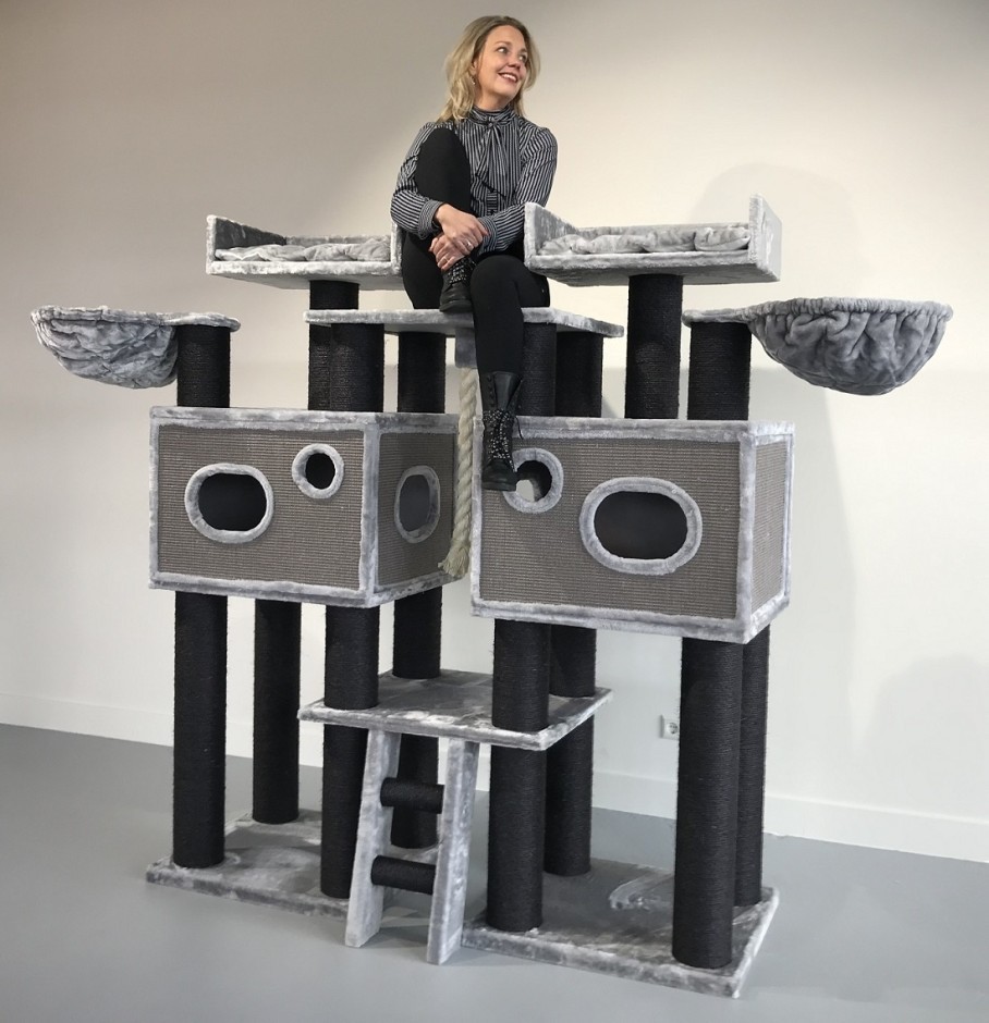 De krabpaal Royal Cat Palace Blackline Light Grey van RHRQuality is een paradijs voor katten die erg groot en stevig is met 15cmØ dikke sisalpalen en ruim 100KG totaalgewicht.. Ook zeer geschikt voor grote of zware katten.