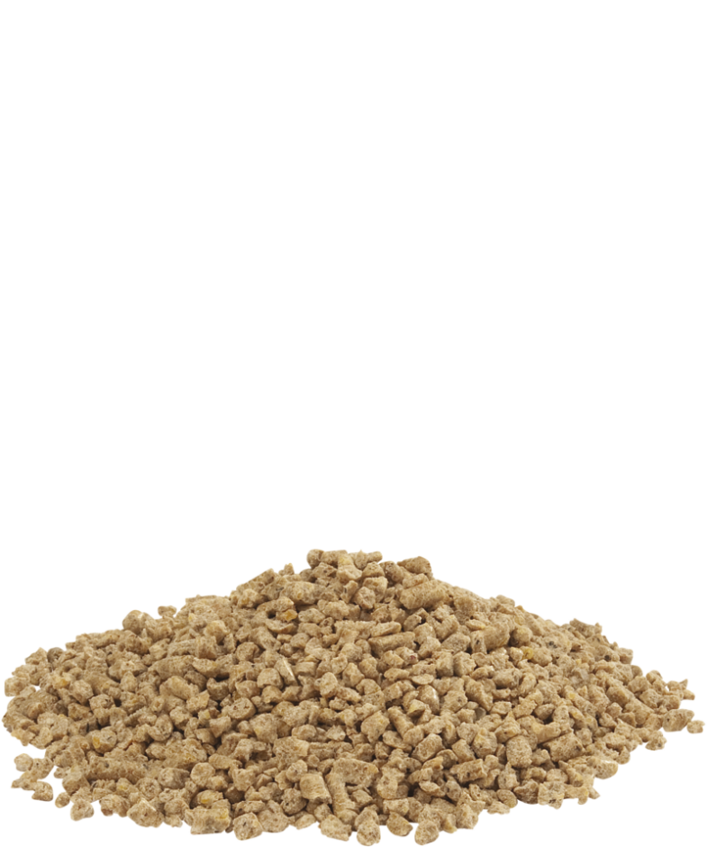 De kruimelvorm staat garant voor een vlotte opname zonder overmatig morsen en is geschikt voor zowel de grotere als de kleine soorten. Ter bescherming tegen coccidiose bevat dit voeder een coccidiostaticum.