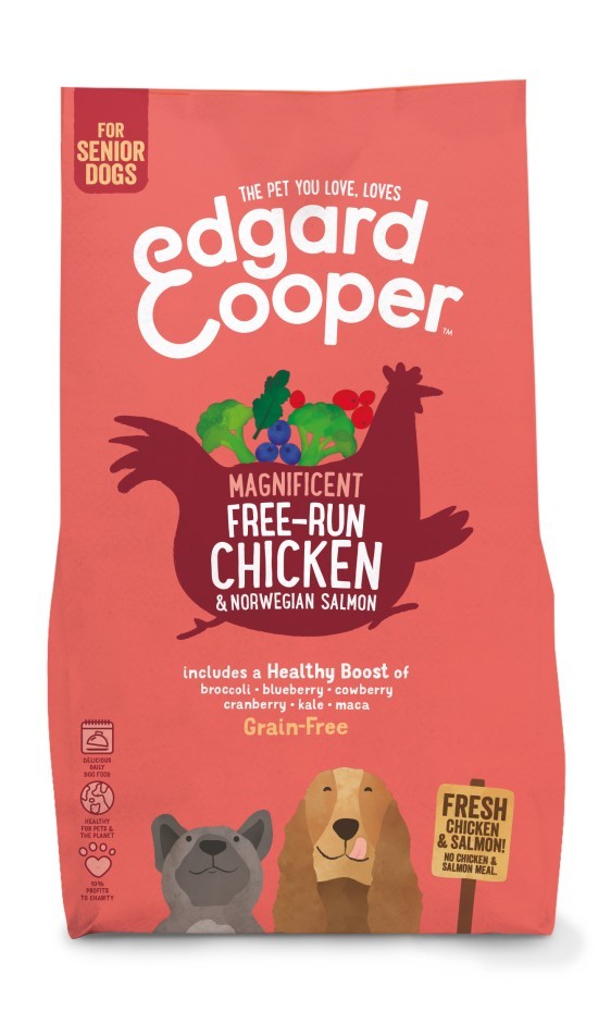NL Volledig diervoeder voor senior honden 8+. Samenstelling: verse kip 35%, bataten, erwten, verse zalm 5%, lijnzaad, erwteneiwit, kippensaus, mineralen, mannan-oligosachariden (MOS), fructo-oligosachariden (FOS), broccoli 0,04%, bosbessen 0,04%, vossenbessen 0,04%, cranberry's 0,04%, boerenkool 0,04%, maca 0,04%, goudsbloemblaadjes, brandnetel, braambesblaadjes, venkel, karwij, kamille, melisse, glucosamine, chondroïtinesulfaat. Nutritionele toevoegingsmiddelen/kg: vitamine A 20.000 IE, vitamine D3 2.000 IE, vitamine E 350 mg. IJzer (ijzer(II)sulfaat-monohydraat) 75 mg; jodium (kaliumjodide) 3,5 mg; koper (koper(II)sulfaat-pentahydraat) 10 mg; mangaan (mangaan(II)sulfaat-monohydraat) 7,5 mg; zink (zinkoxide) 150 mg; selenium (natriumseleniet) 0,15 mg. Analytische bestanddelen: ruw eiwit 21%, ruw vet 12%, ruwe celstof 5%, ruwe as 7,9%, omega-6-vetzuur 1,2%, omega-3-vetzuur 1,3%, calcium 1%, fosfor 0,8%. Ten minste houdbaar tot/partijnummer: zie bovenzijde van de zak. Uw hond is geen cactus: hij heeft water nodig! Zorg ervoor dat er altijd vers drinkwater voor uw hond beschikbaar is wanneer u hem zijn brokken geeft. Psst... Onze brokken worden bij voorkeur droog en koel bewaard. 349 kcal/100 g. GRAANVRIJ
