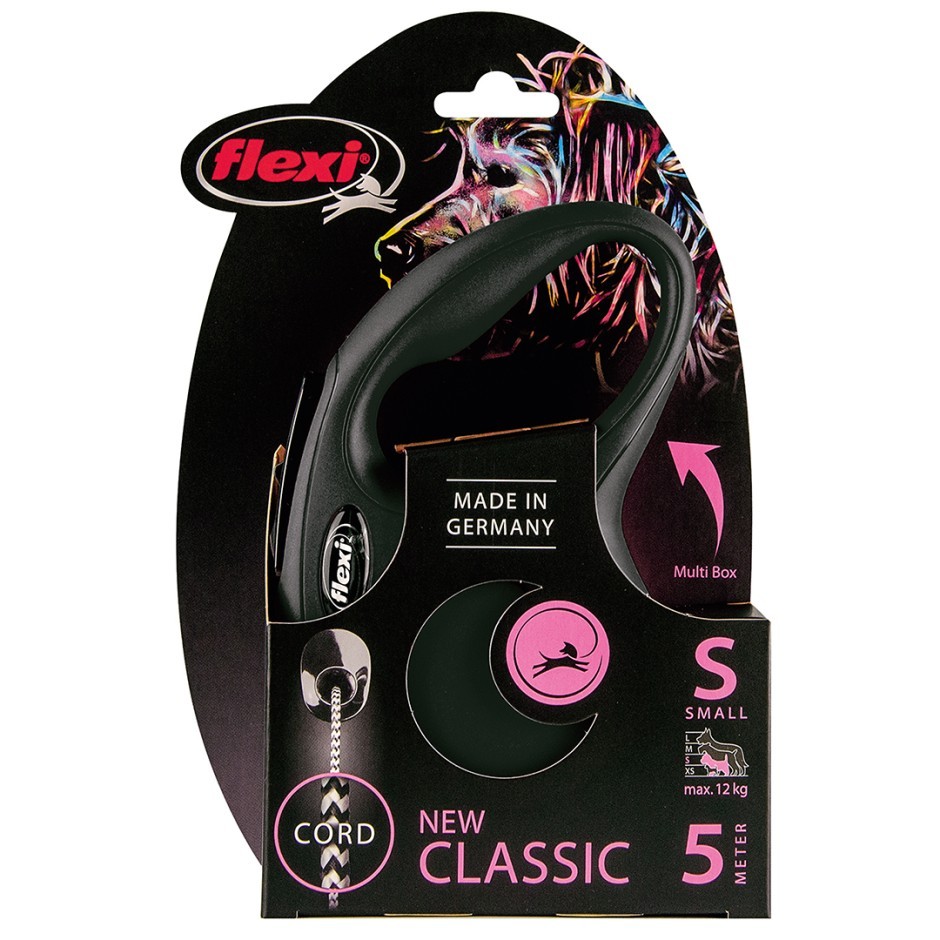 Flexi is al jarenlang een gerenommeerde naam op het gebied van hondenlijnen met een oprolfunctie. De kwaliteit van Flexi wordt onder andere bepaald door de unieke dubbele remtechniek, de duurzaamheid van houder en lijn en het gebruiksgemak. Door het oprolmechanisme is de Flexi een ideale lijn om uw hond bewegingsvrijheid te geven, en daarnaast kort(er) te houden als dat nodig is. Ook voor het baasje is deze lijn zeer comfortabel door de zachte handgreep. Geschikt voor honden tot 12 kilo. 5 meter lange rollijn met koord en verchroomde musketon.