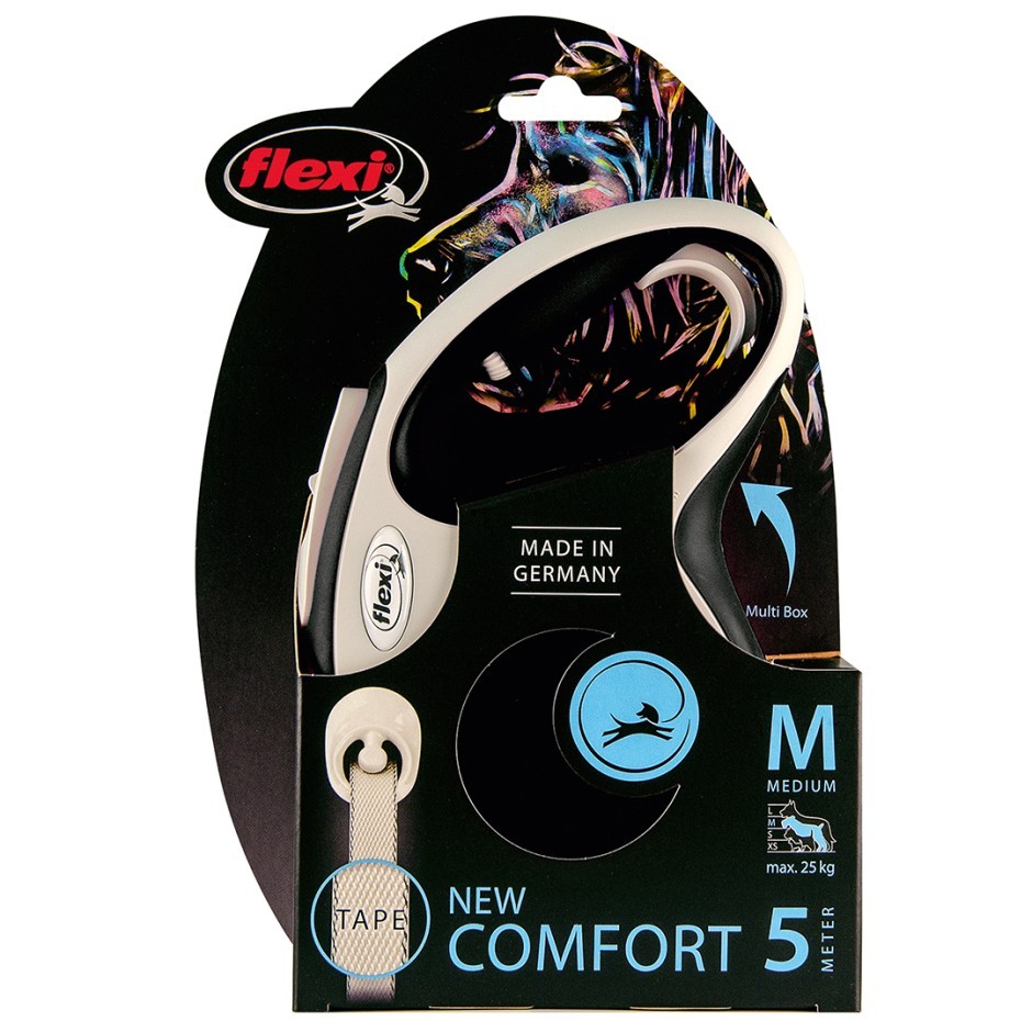 Flexi is al jarenlang een gerenommeerde naam op het gebied van hondenlijnen met een oprolfunctie. De kwaliteit van Flexi wordt onder andere bepaald door de unieke dubbele remtechniek, de duurzaamheid van houder en lijn en het gebruiksgemak. Door het oprolmechanisme is de Flexi een ideale lijn om uw hond bewegingsvrijheid te geven, en daarnaast kort(er) te houden als dat nodig is. Ook voor het baasje is deze lijn zeer comfortabel door de zachte handgreep. Geschikt voor honden tot 25 kilo. 5 meter lange rollijn met koord en verchroomde musketon.