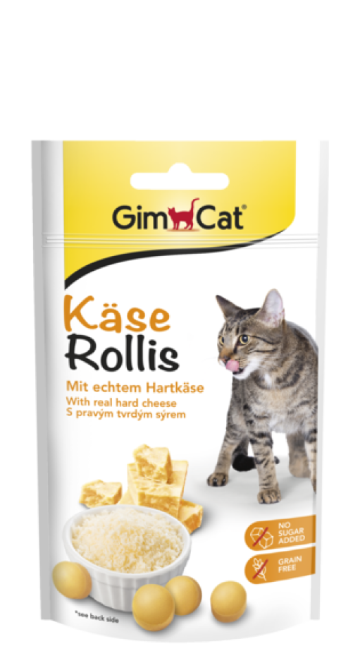 GimCat Käse-Rollis zijn heerlijke snacks met echte harde kaas. Ze worden bereid met de beste ingrediënten en zonder toevoeging van suiker. Kaas-Rollis zijn niet alleen onweerstaanbaar lekker, ze stimuleren uw kat ook om te spelen. De perfecte combinatie van smullen en speelplezier.
