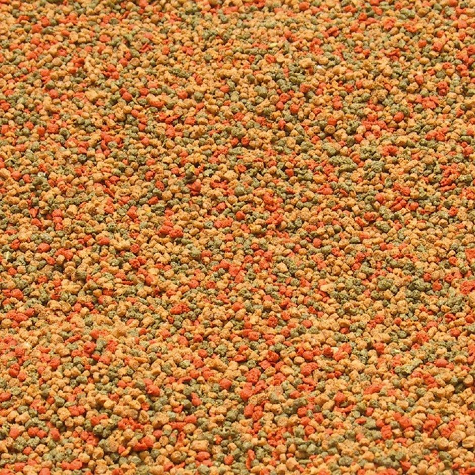 Hoofdvoer in granulaatvorm voor aquariumvissen.