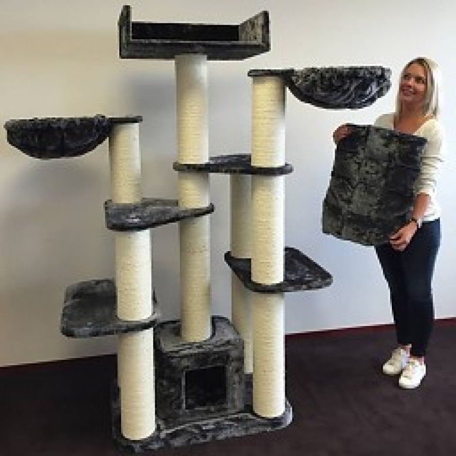 De krabpaal Krabpaal Maine Coon Fantasy Dark Grey is een droom van een krabpaal die erg groot en stevig is met extra dikke 15cmØ sisalpalen.