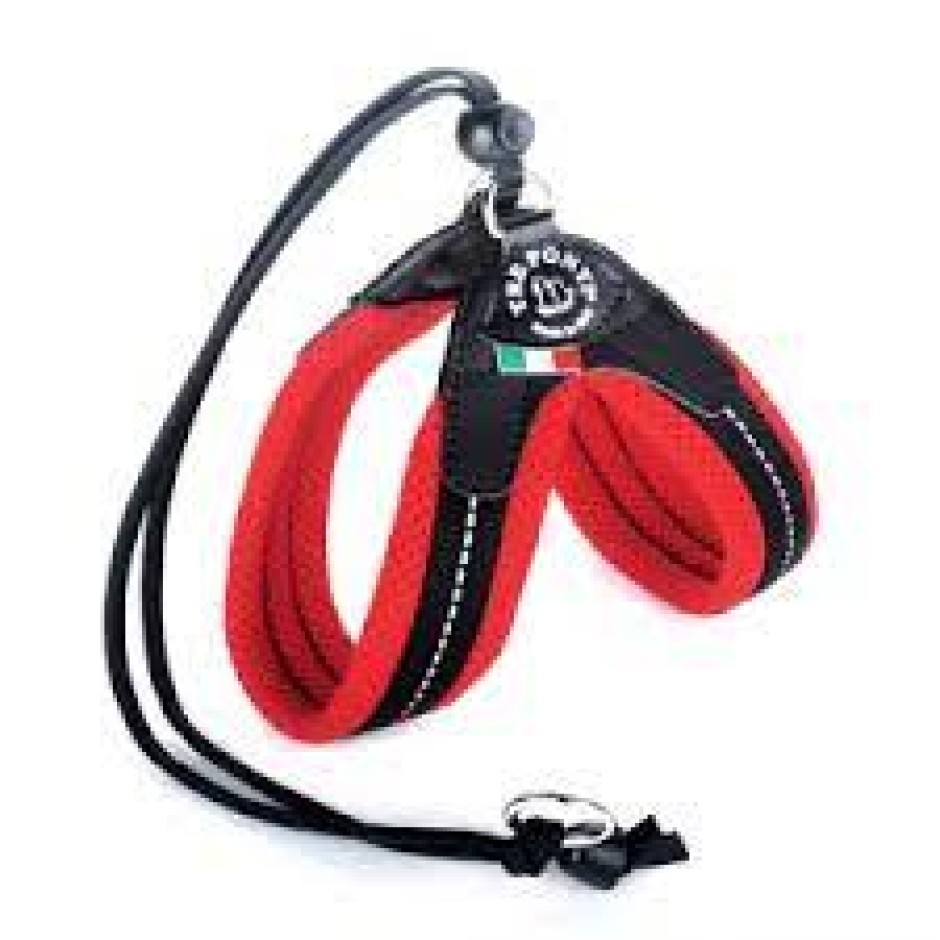 Het Tre Ponti Liberta tuigje is geschikt voor kleinere rassen, pups en katten. Dit tuigje is voorzien van een innovatief sluitingssysteem door middel van een aantrekkoordje. Dit koordje heeft een aantal voordelen. Het ontmoedigd trekken bij honden en het maakt, bij de juiste maat en instelling, ontsnappen onmogelijk. Door dit laatste is het Liberta tuigje ook bij katteneigenaren razend populair. Maar.. Elk voordeel heeft zijn nadeel. Laat u de hond regelmatig loslopen? Kies dan liever voor een Fibbia tuigje. Het koordje sleept anders bij loslaten achter de hond aan en kan hinderlijk zijn en risico’s geven. De tuigjes zijn vederlicht.