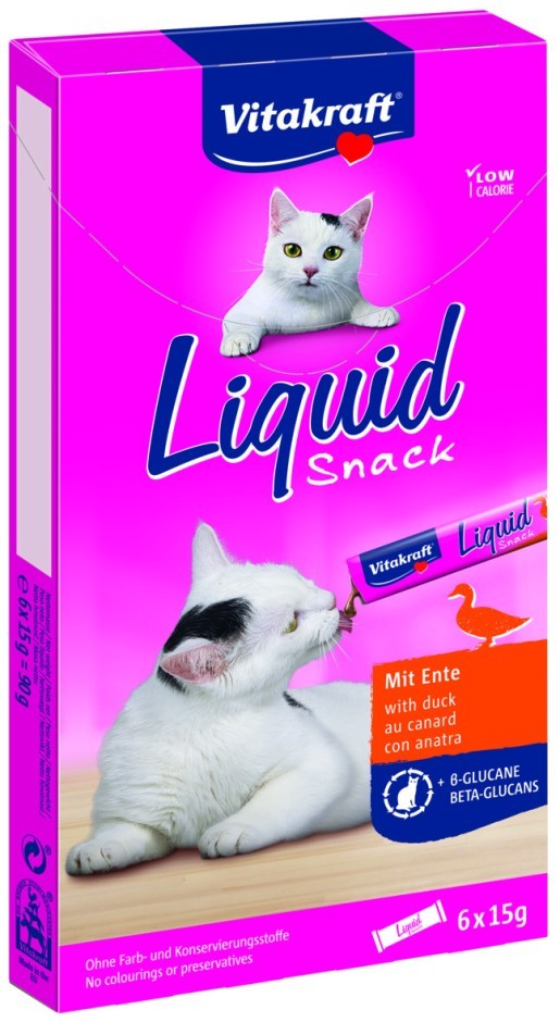 Vloeibare snack met eend en bèta-glucanen voor de ondersteuning van het immuunsysteem van de kat. De snack kan puur of als toplaag over de hoofdvoer dit om de acceptatie te vergroten of te bevriezen en te geven als ijsje. Het bevat weinig caloriën, heeft een suikervrij recept en is voor katten vanaf 3 maanden geschikt. De snack is per 6 stuks verpakt.