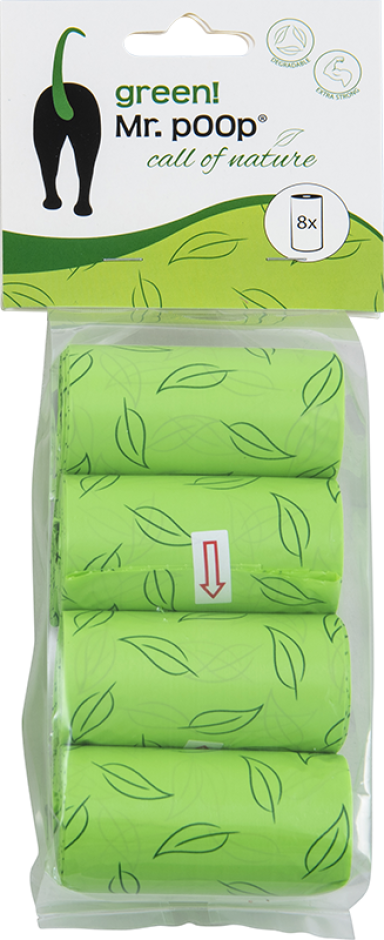 Mr.POOP GREEN! Navullling poepzakjes 8 Rolletjes-Groen motief