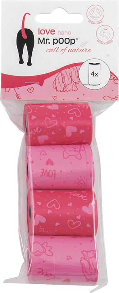 Mr.POOP LOVE Nano Navullling poepzakjes 4 Rolletjes-Roze motief