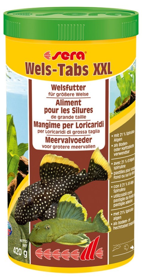 Sera Wels-Tabs XXL is het hoofdvoeder uit grote bodemtabletten voor grotere meervallen (bijv. plecos) en andere bodemvissen. De tabs kunnen ook aan het glas van het aquarium gehecht worden. Deze manier van voeren biedt boeiende mogelijkheden de verschillende siervissoorten te bekijken.