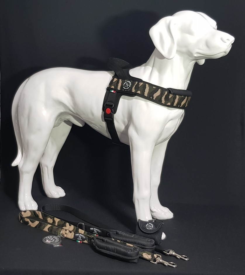Het Tre Ponti Primo plus tuig is een allround stoer hondentuig voor grote honden. Het is uitstekend geschikt om mee te wandelen, te fietsen, te zwemmen en te sporten. Het model en de pasvorm is iets anders dan het basic Primo tuig. De ‘uitsnede’ op de rug van de hond is wat dieper, waardoor deze beter aansluit op gespierde honden met een hoog aflopende schoft. De borstband is breder en van nylon ripproof materiaal gemaakt, waardoor de krachten van de hond beter verspreid worden. De flexibel ‘meelopende’ ring aan de paniekgreep loopt soepel mee met elke wending die de hond maakt. Hierdoor behoudt u in elke situatie perfecte grip en controle over uw hond. Deze Primo tuigen zijn er in diverse kleuren en motieven, dus eigenlijk voor elke hond wel een leuk model en bij de vacht passende kleur.