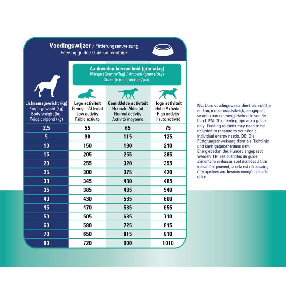 ProCare Croque veterinary Diet GASTRO-INTESTINAL Low fat kan droog gegeven worden. Bereiding is niet nodig. Zorg dat er altijd vers drinkwater op kamertemperatuur ter beschikking staat. Verdeel de dagportie ProCare Croque veterinary Diet GASTRO-INTESTINAL Low fat over minimaal twee maaltijden per dag. Overige bijvoeding wordt afgeraden. Aanvullende informatie dieetvoeding. ProCare Croque Veterinary Diet GASTRO-INTESTINAL Low fat is speciaal geschikt voor volwassen honden ter compensatie voor een slechte spijsvertering. Ook geschikt bij acute diarree of tijdens de daaropvolgende herstelperiode. Bijzonder voedingsdoel: compensatie voor een slechte spijsvertering en vermindering van acute intestinale absorptiestoornissen. Essentiële voedingskenmerken: goed verteerbare ingrediënten, laag vetgehalte en een verhoogd gehalte aan elektrolyten. Contra-indicaties: pups, drachtige of zogende teven. Aanbevolen gebruiksduur: 3-12 weken, maar het hele leven bij chronische pancreasinsufficiëntie, 1-2 weken bij acute intestinale absorptiestoornissen. Aangeraden wordt om vóór gebruik een dierenarts te raadplegen.