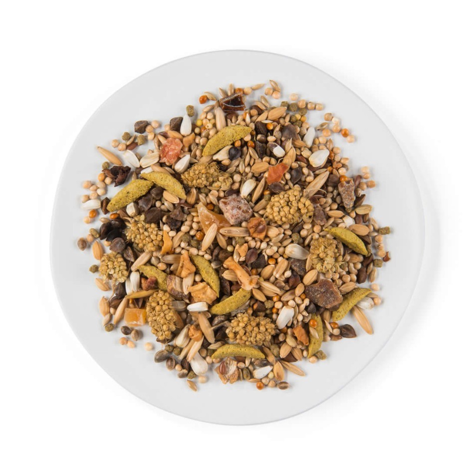 ongepelde rijst / dadels / saffloorpitjes / boekweit / ei pure & gevarieerde fijnproevers zadenmix // bijzondere ingrediënten op maat van uw agapornis / zonder kunstmatige geur-, kleur en smaakstoffen / alle voedingsstoffen voor een gezond & gelukkig leven // puur genieten van smaken uit de natuur