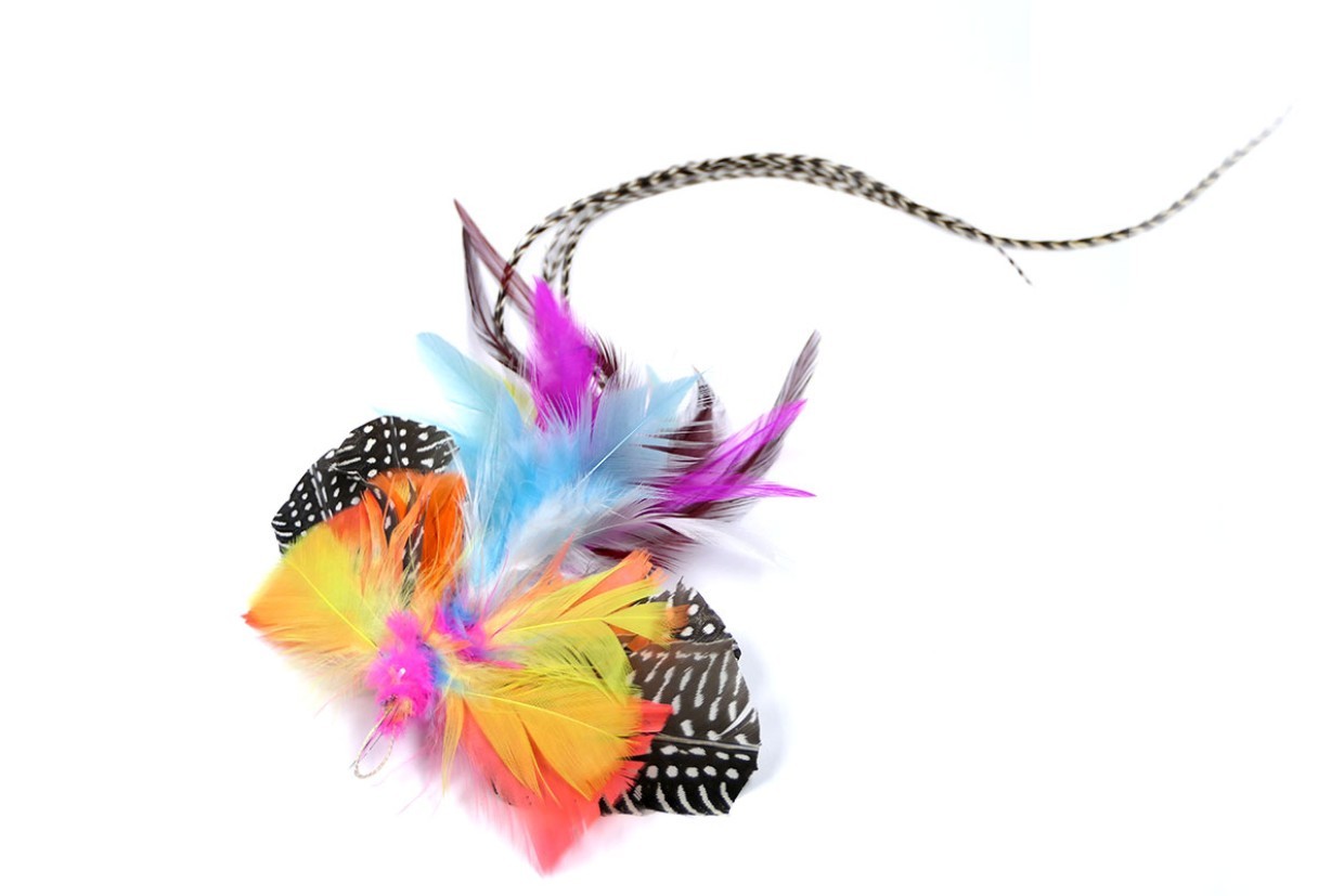 Regenboogkleuren maken al een tijdje deel uit van het Tabby Tijger assortiment. Na de regenbooglintjes, nu ook de regenboogvlinder. Met zijn combinatie van prachtige hanen- en parelhoen veertjes, en niet te vergeten zijn elegante lange staart, is deze vlinder een op zich al een beleving om naar te kijken.