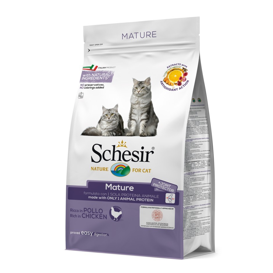 De samenstelling van alle producten van het assortiment is vanuit voedingsoogpunt goedgekeurd door de afdeling Diergeneeskunde van de universiteit Alma Mater Studiorum van Bologna. Samengesteld met een enkele bron van dierlijke proteïne (kip). Deze smakelijke, complete en uitgebalanceerde voeding is licht verteerbaar en voldoet speciaal aan de voedingsbehoeften van oude katten.