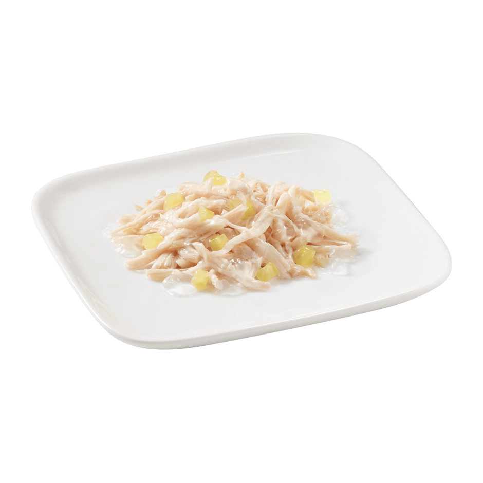 De tonijn is afkomstig van duurzame en getraceerde visserij: op de verpakking staat duidelijk aangegeven welke tonijnsoort voor elke partij is gebruikt. Het recept is op basis van echte kipfilets gecombineerd met echte stukjes ananas, dorstlessend en gewaardeerd exotisch fruit, voor een heerlijke en originele maaltijd, bereid in verleidelijke gelatine.