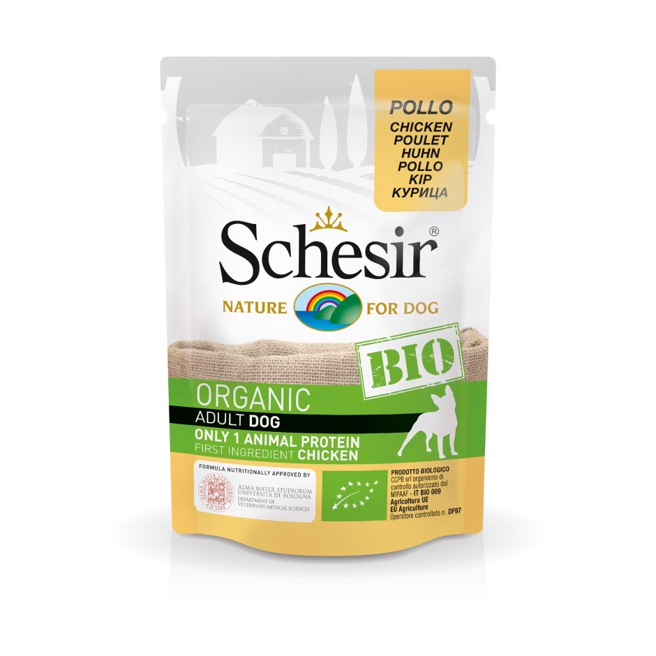 Schesir BIO is het assortiment van complete en uitgebalanceerde voeding, gecontroleerd en gecertificeerd als biologisch door certificeringsinstanties die erkend en geautoriseerd zijn door de bevoegde Europese autoriteiten. Dit assortiment is een bron van dierlijke eiwitten, van dieren die zijn grootgebracht met niet-intensieve methoden, bewegingsvrijheid en met BIO-voer, volgens de communautaire richtlijnen in kwestie.