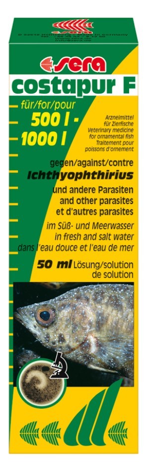 Waterbehandelingsmiddel tegen Ichthyophthirius multifiliis (verwekker van de wittestipziekte) en andere eencellige huidparasieten, zoals b.v. Ichthyobodo necator, Chilodonella, Trichodina, Brooklynella en Cryptocaryon irritans (het laatste in zeewater) evenals tegen verschimmelingen (mycosen). Tijdens de behandeling moet de bak verduisterd worden.
