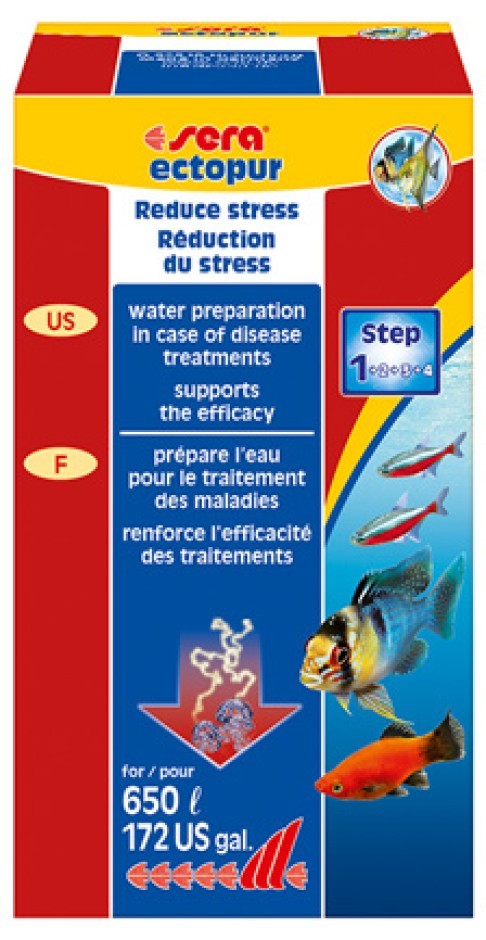 Sera ectopur is een zoutmengsel dat zuurstof vrij laat komen voor de verzorging bij stress en voor een effectieve ondersteuning van behandelingen met geneesmiddelen tegen uitwendige aandoeningen van vissen (b.v. ectoparasieten, bacteriën, verschimmelingen). De zuurstof heeft een reinigende werking en vergemakkelijkt de ademhaling, terwijl het zout de vorming van nieuwe slijmhuid stimuleert en zo het afstoten van op of in de huid aanwezige ziekteverwekkers bevordert. In totaal wordt de stress verminderd. Is een behandeling met geneesmiddelen noodzakelijk, dan wordt de effectiviteit ervan door Sera ectopur verbeterd.
