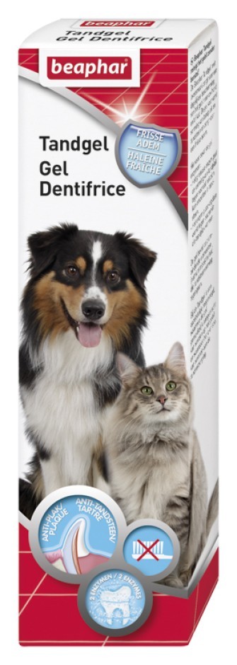 Beaphar Tandgel reinigt het gebit zonder borstel! De Beaphar Tandgel zorgt voor een dagelijkse bescherming van het gebit van uw hond. De gel voorkomt de vasthechting van tandplak en dus ook de vorming van tandsteen en de slecht ruikende adem die hiervan het gevolg is. Hiervoor bevat de tandgel 3 verschillende enzymen: het protease enzym, het amyloglucosidase enzym en het gluco-oxydase enzym.