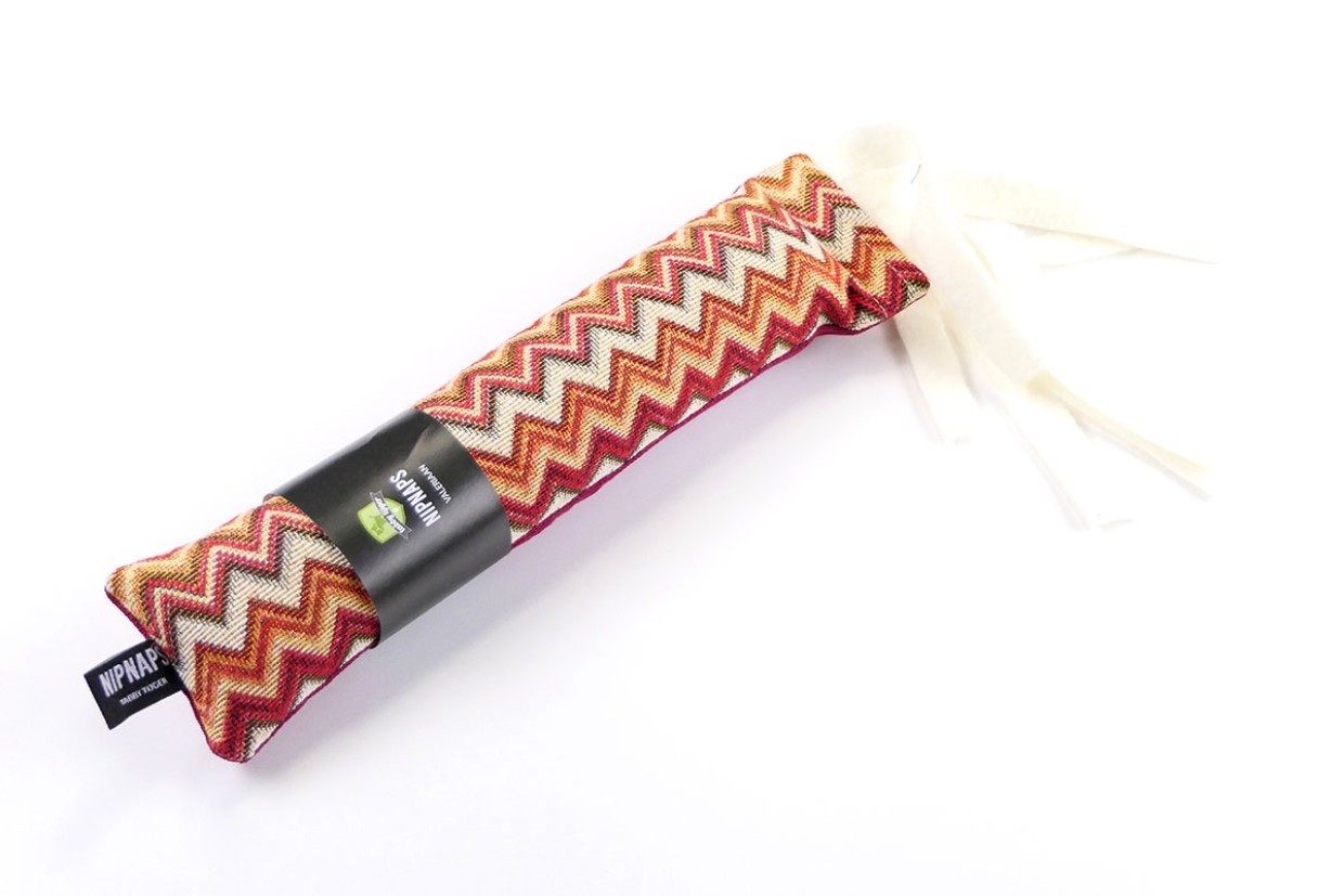 Dit trappelkussentje is voor de echte fashionista’s. Voldoende streepjes en zig-zagjes! dus als je kat er een beetje dronken bijloopt, dan is dat niet omdat er iets in het drinkbakje gedrupt is maar eerder omdat de Missoni streepjes een beetje hypnotiserend werken. Om nog maar te zwijgen over de matatabi waar het trappelkussentje mee gevuld is.